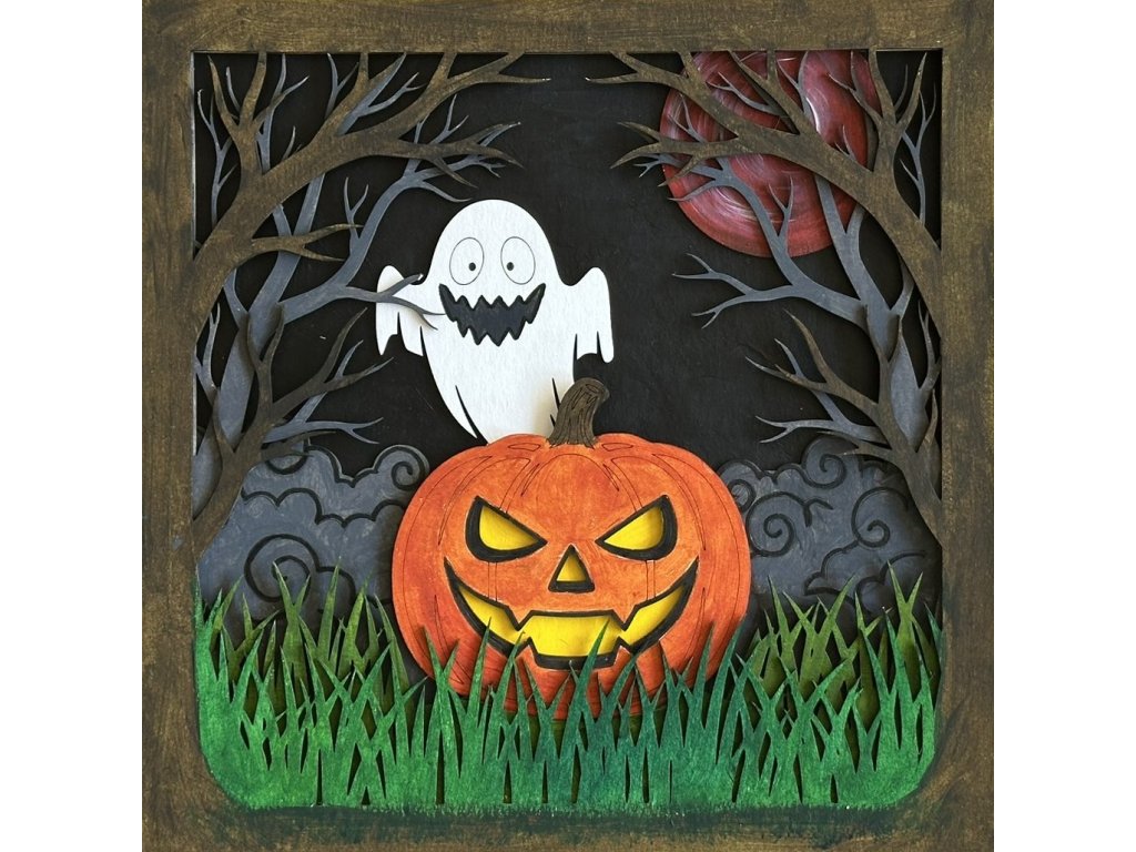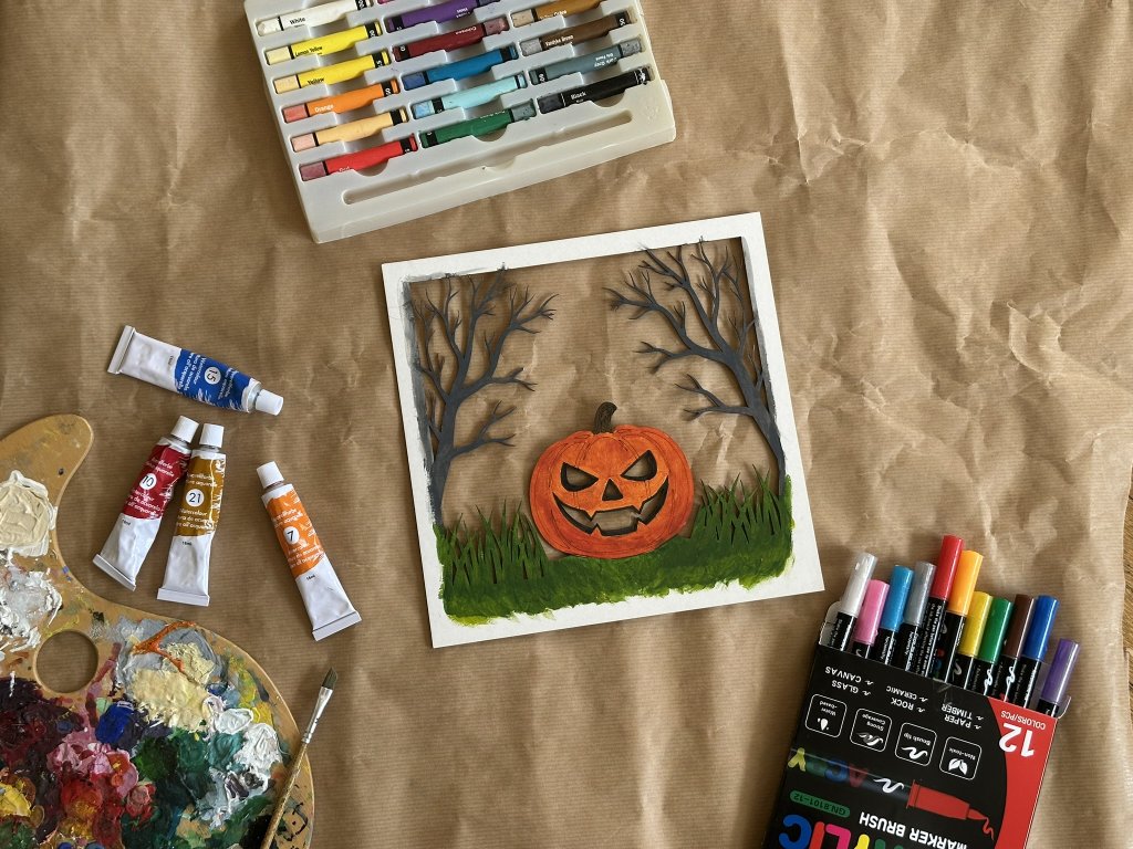 Stačí vybarvit akrylovými barvami, křídami nebo fixami, jednotlivé vrstvy jednoduše slepit lepidlem na papír a… je hotovo! Děti si tak mohou snadno vytvořit vlastní originální Halloweenskou dekoraci, na kterou budou pyšné.